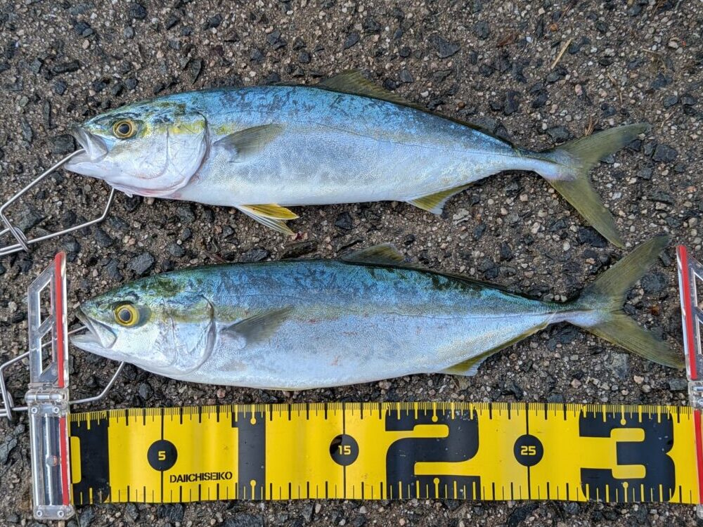 6時過ぎから釣り開始。西風が強くルアーが流されていきます。サゴシが回って来てもいい時間帯になっても反応無しです。7時半ごろサゴシらしくないアタリが出ました。合わせてみるとなかなかの引きです。上がってきたのは、小さいハマチ!(ツバス)でした。