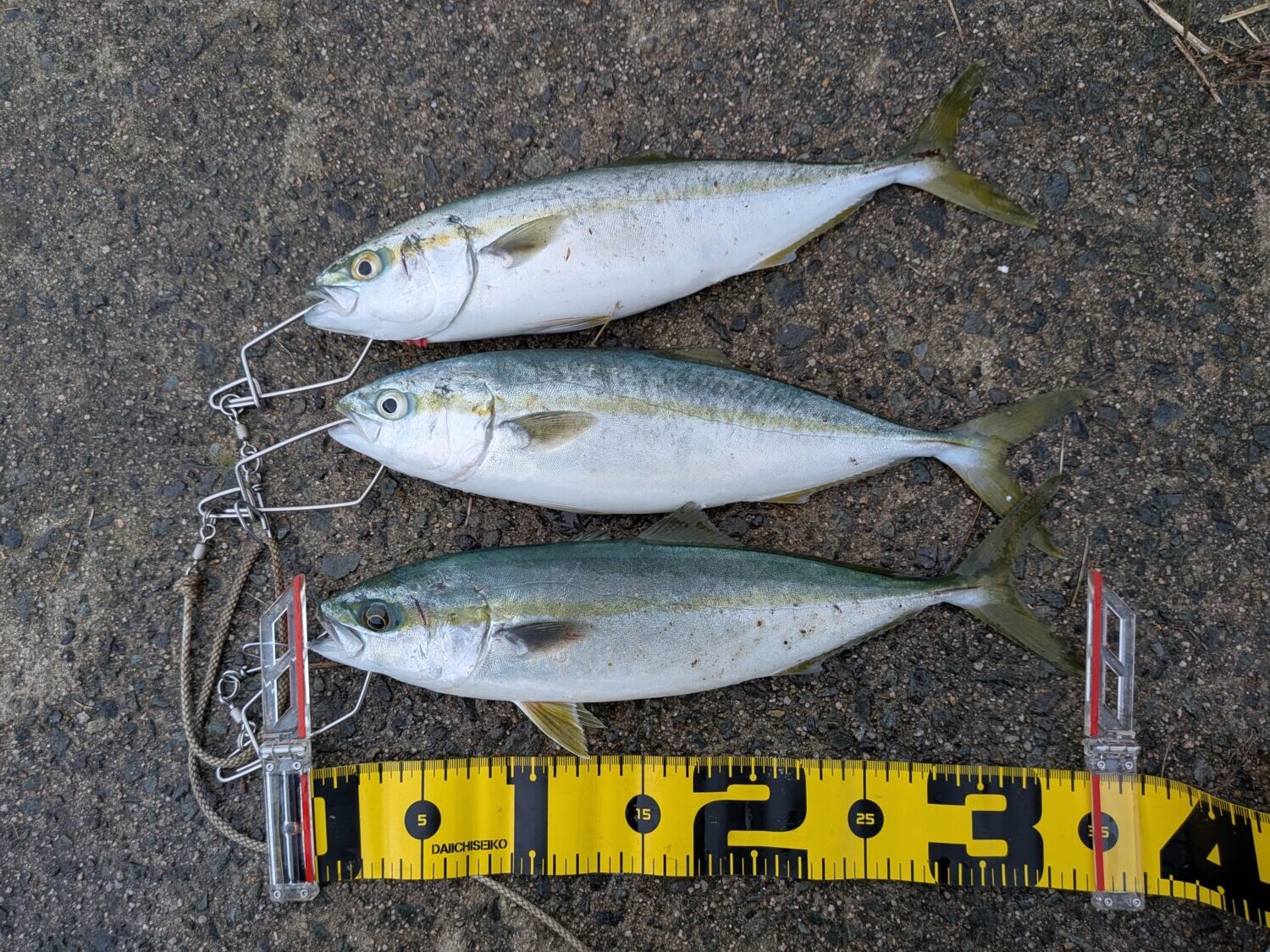 日の出後に周りで釣れ始めました。ハマチのようです。